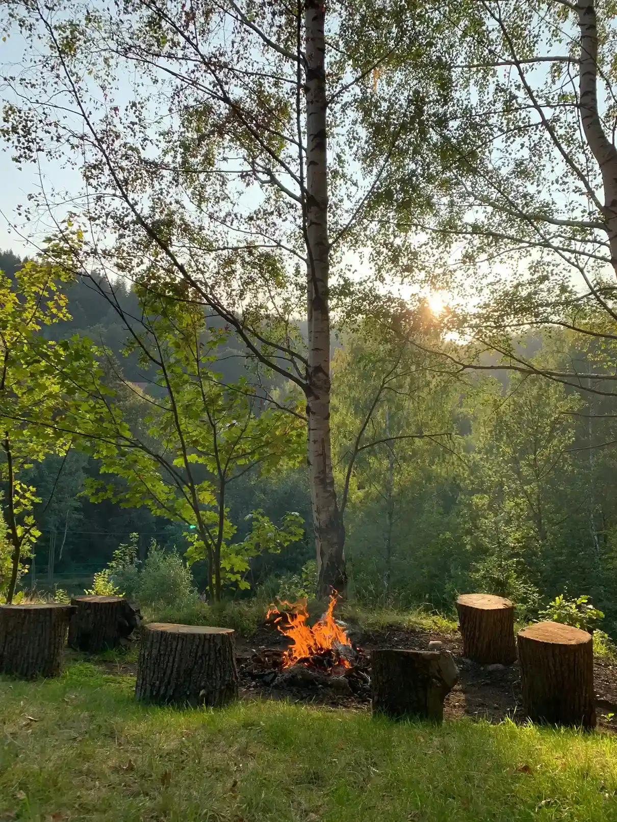 Jest również miejsce na ognisko z pieńkami, gdzie można spędzić miłe wieczory, ciesząc się tańczącymi płomieniami.
